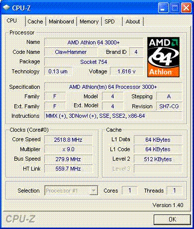 | Процессор (ядро) | AMD Athlon 64 (ClawHammer) |