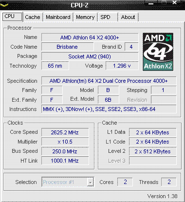 Результат разгона AMD Athlon X2 (Brisbane)