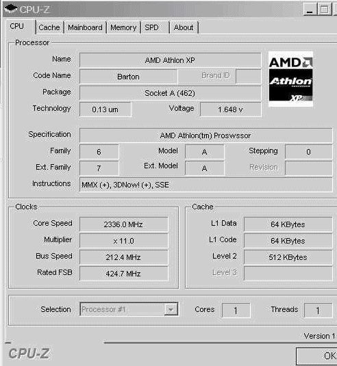 | Процессор (ядро) | AMD Athlon XP (Barton) |