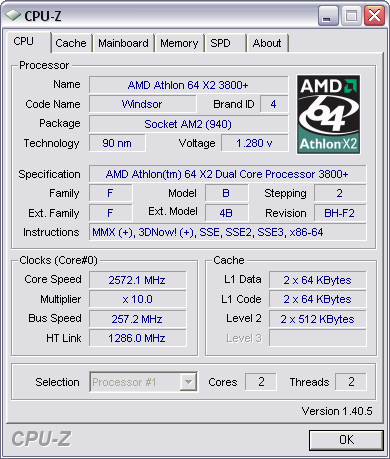 | Процессор (ядро) | AMD Athlon 64 X2 (Windsor) |
