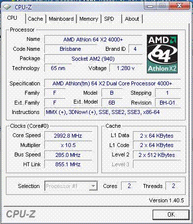 Результат разгона AMD Athlon 64 X2 (Brisbane)