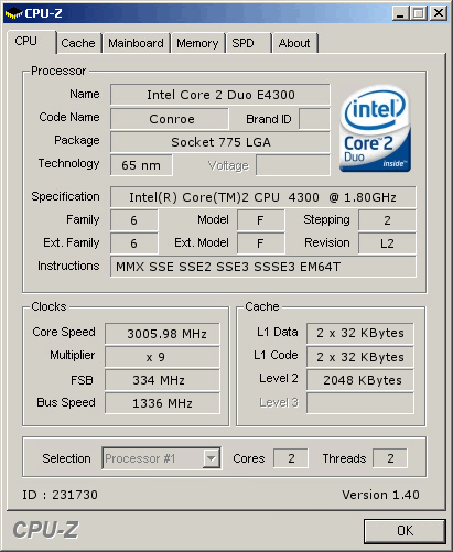 Результат разгона Intel Core 2 Duo (Conroe-2M)