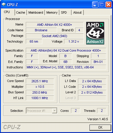 | Процессор (ядро) | AMD Athlon 64 X2 (Brisbane) |