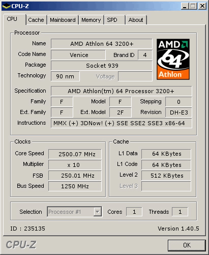 | Процессор (ядро) | AMD Athlon 64 (Venice) |