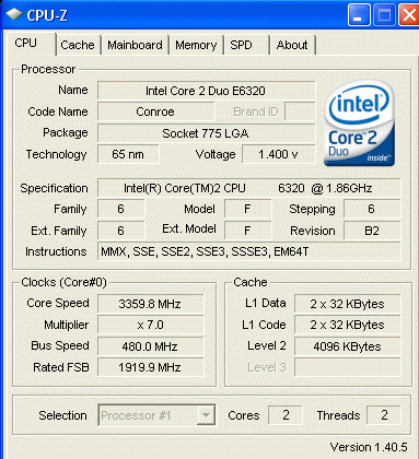 | Разгон, максимально стабильная частота (FSB x Ratio) | 3360 (480 x 7.0) |