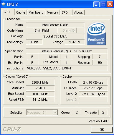| Процессор (ядро) | Intel Pentium D (SmithField) |