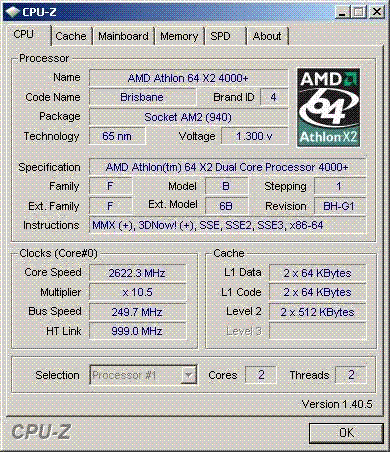 | Процессор (ядро) | AMD Athlon 64 X2 (Brisbane) |
