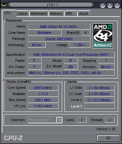 Результат разгона AMD Athlon 64 X2 (Brisbane)
