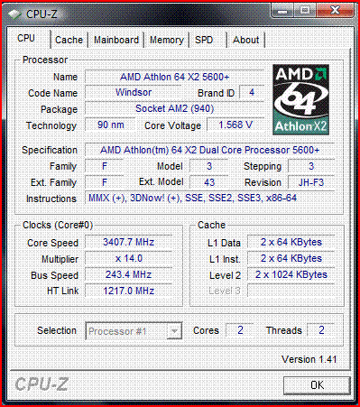 | Процессор (ядро) | AMD Athlon 64 X2 (Windsor) |