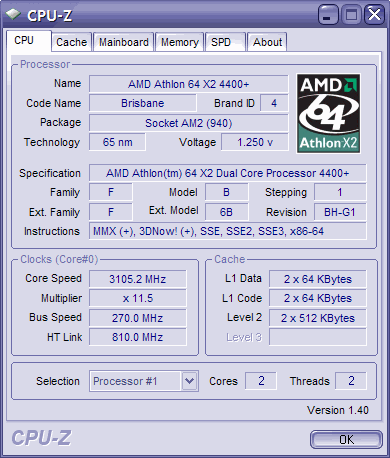 | Процессор (ядро) | AMD Athlon 64 X2 (Brisbane) |
