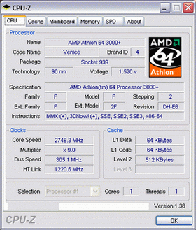 Результат разгона AMD Athlon 64 (Venice)