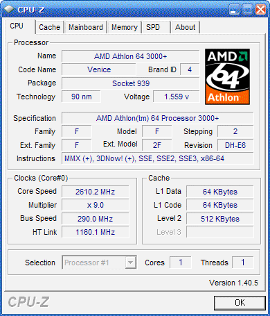 | Процессор (ядро) | AMD Athlon 64 (Venice) |