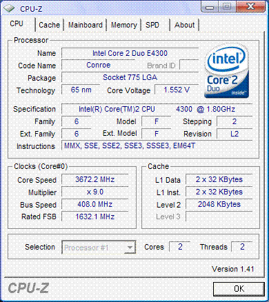 | Процессор (ядро) | Intel Core 2 Duo (Conroe-2M) |