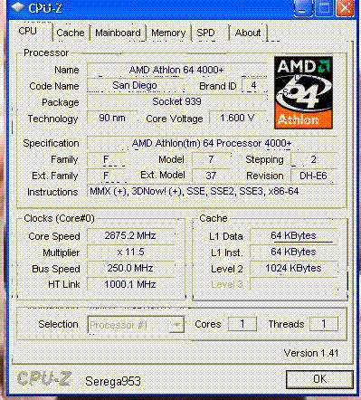 | Процессор (ядро) | AMD Athlon 64 (San Diego) |