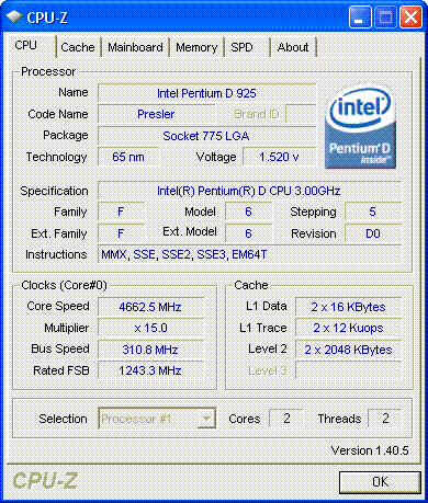 | Процессор (ядро) | Intel Pentium D (Presler) |