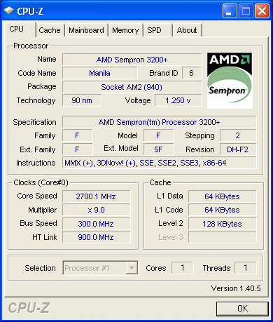 | Процессор (ядро) | AMD Sempron (Manila) |
