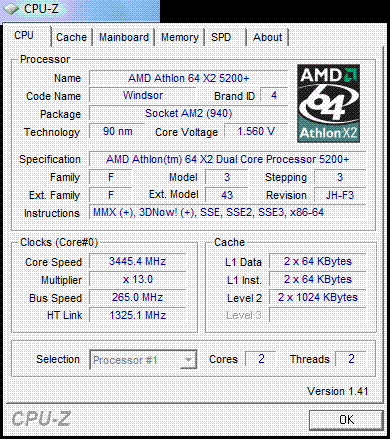 | Процессор (ядро) | AMD Athlon 64 X2 (Windsor) |