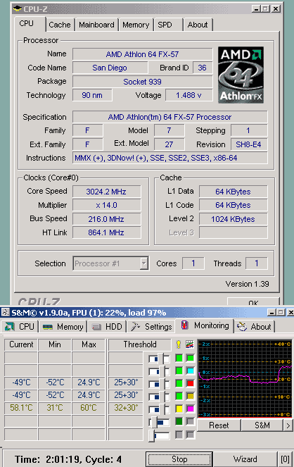Результат разгона AMD Athlon 64 FX