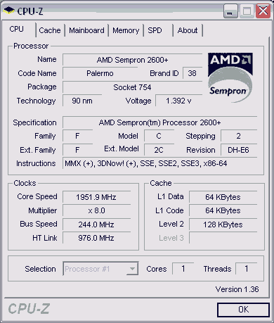 Результат разгона AMD Sempron (Palermo)
