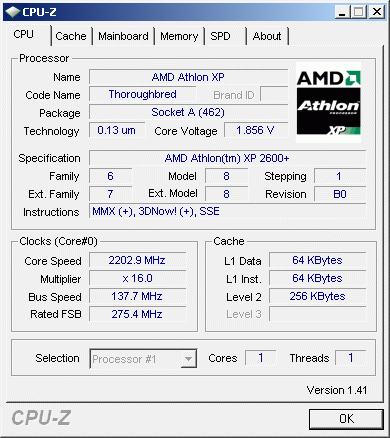 | Процессор (ядро) | AMD Athlon XP (Thoroughbred) |