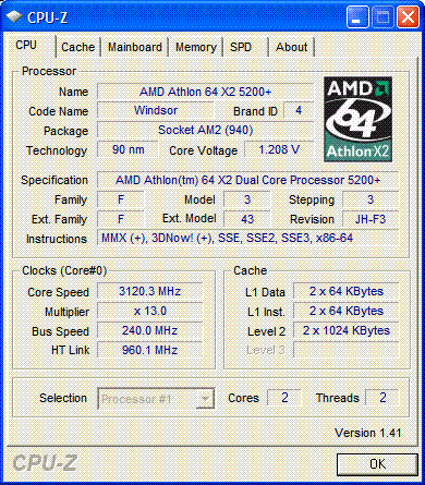 | Процессор (ядро) | AMD Athlon 64 X2 (Windsor) |