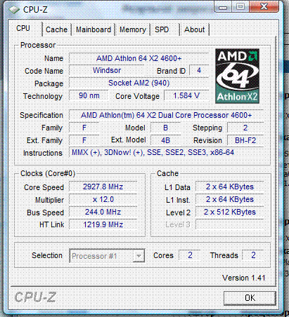 | Процессор (ядро) | AMD Athlon 64 X2 (Windsor) |