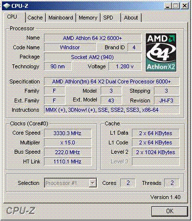 Результат разгона AMD Athlon 64 X2 (Windsor)