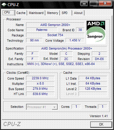 | Процессор (ядро) | AMD Sempron (Palermo) |