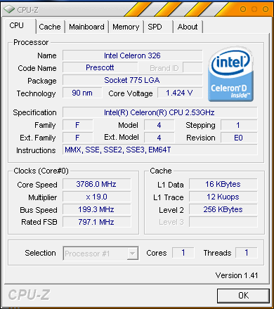 Результат разгона Intel Celeron D (Prescott-256)