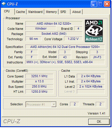 | Процессор (ядро) | AMD Athlon 64 X2 (Windsor) |