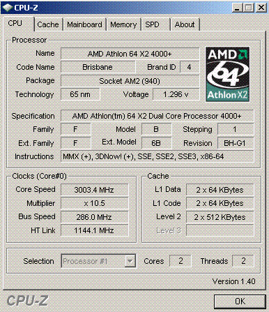 Результат разгона AMD Athlon 64 X2 (Brisbane)