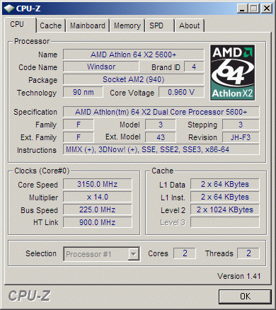 | Процессор (ядро) | AMD Athlon 64 X2 (Windsor) |