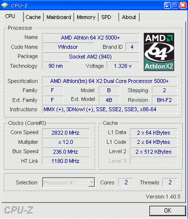 | Процессор (ядро) | AMD Athlon 64 X2 (Windsor) |