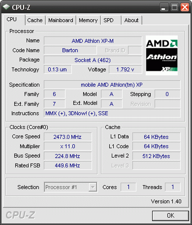 | Процессор (ядро) | AMD Athlon XP (Barton) |
