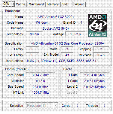 | Процессор (ядро) | AMD Athlon 64 X2 (Windsor) |