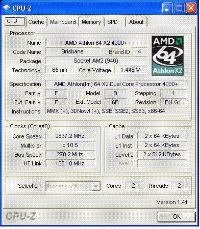 Результат разгона AMD Athlon 64 X2 (Brisbane)