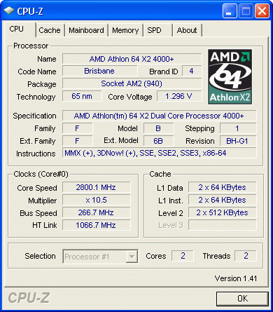 | Процессор (ядро) | AMD Athlon 64 X2 (Brisbane) |