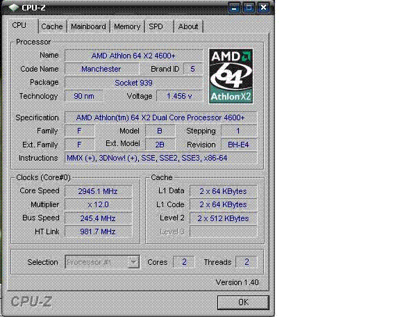 | Процессор (ядро) | AMD Athlon 64 X2 (Manchester) |