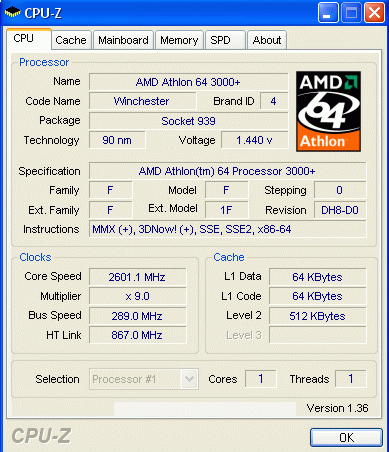 | Процессор (ядро) | AMD Athlon 64 (Winchester) |