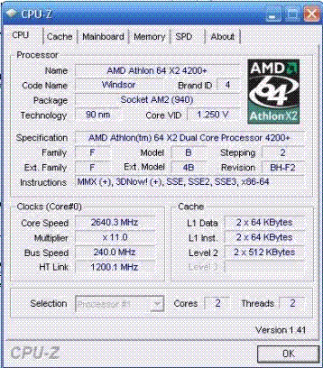 | Процессор (ядро) | AMD Athlon 64 X2 (Windsor) |