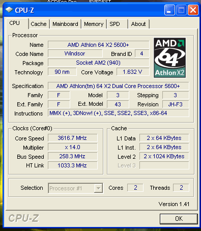 Результат разгона AMD Athlon 64 X2 (Windsor)
