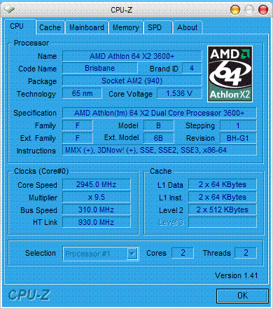 Результат разгона AMD Athlon 64 X2 (Brisbane)