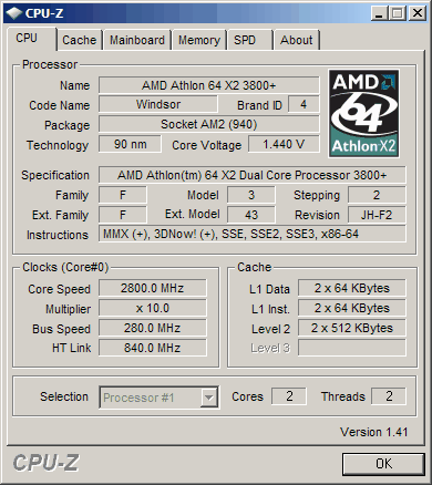 | Процессор (ядро) | AMD Athlon 64 X2 (Windsor) |