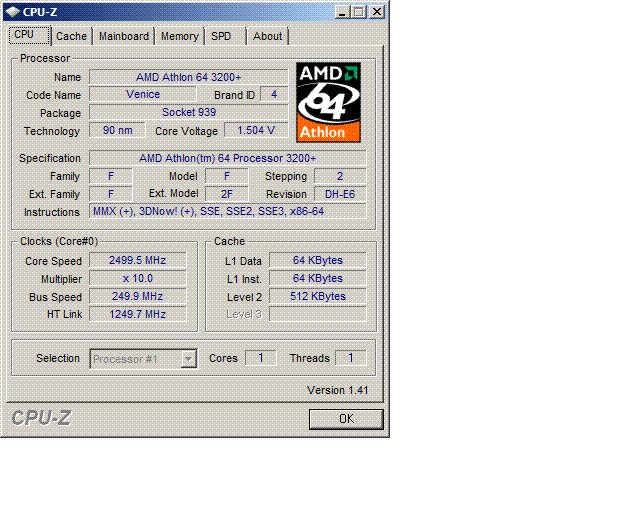 | Процессор (ядро) | AMD Athlon 64 (Venice) |