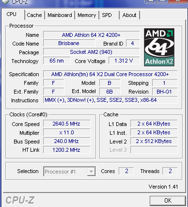 Результат разгона AMD Athlon 64 X2 (Brisbane)