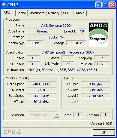 Результат разгона AMD Sempron (Palermo)