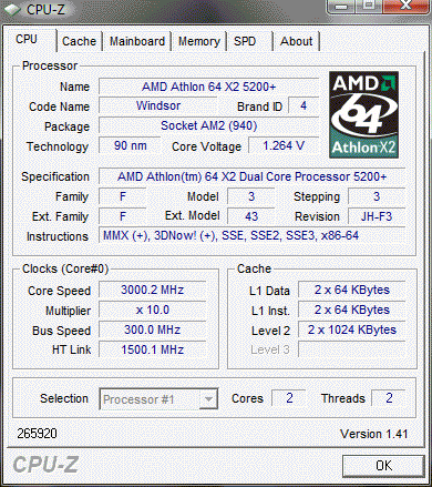 | Процессор (ядро) | AMD Athlon 64 X2 (Windsor) |