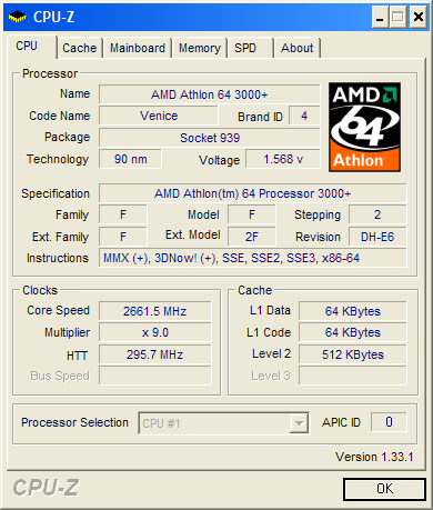 Результат разгона AMD Athlon 64 (Venice)