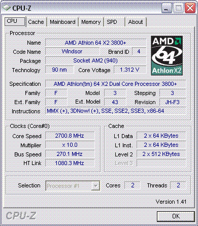 | Процессор (ядро) | AMD Athlon 64 X2 (Windsor) |