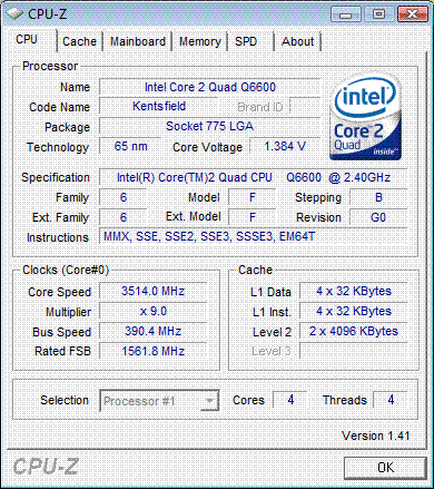 | Процессор (ядро) | Intel Core 2 Quad (Kentsfield) |